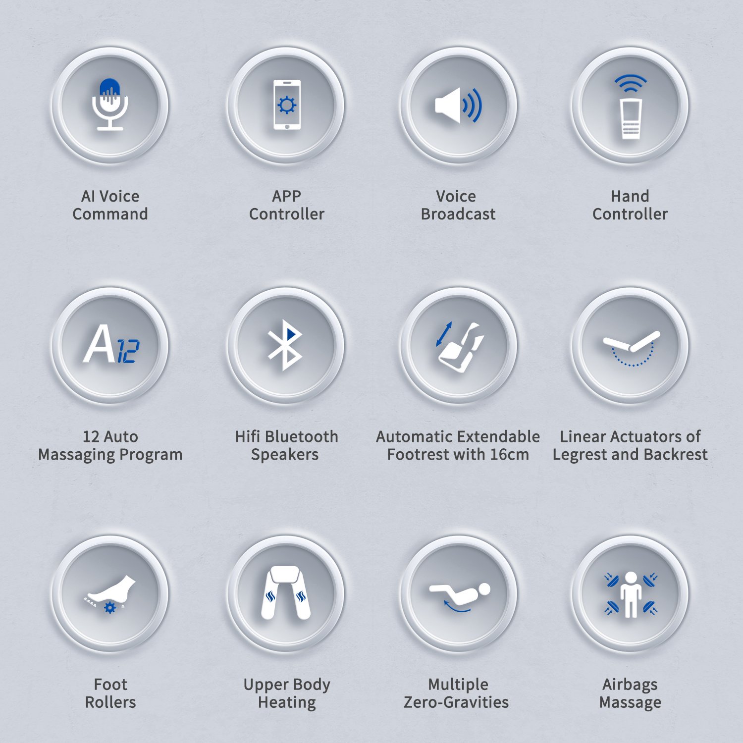 12 Automatic Procedures and 6 Massage TechniquesWith 12 automatic massage modes and 6 Massage Techniques, you can select the desired mode and enjoy a comfortable massage experience.12 preset auto modes: master, relaxing, sport care, soft, stretch, sleep, SPA, refreshing, spine care, waist & back, neck & shoulder, slim.6 massage techniques: Kneading, Shiatsu, Guasha, Clapping, Tapping, KnockingFrom kneading to tapping, Shiatsu to Swedish, the massage chair offers a wide range of automatic programs that cater to all your massage needs.