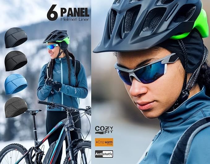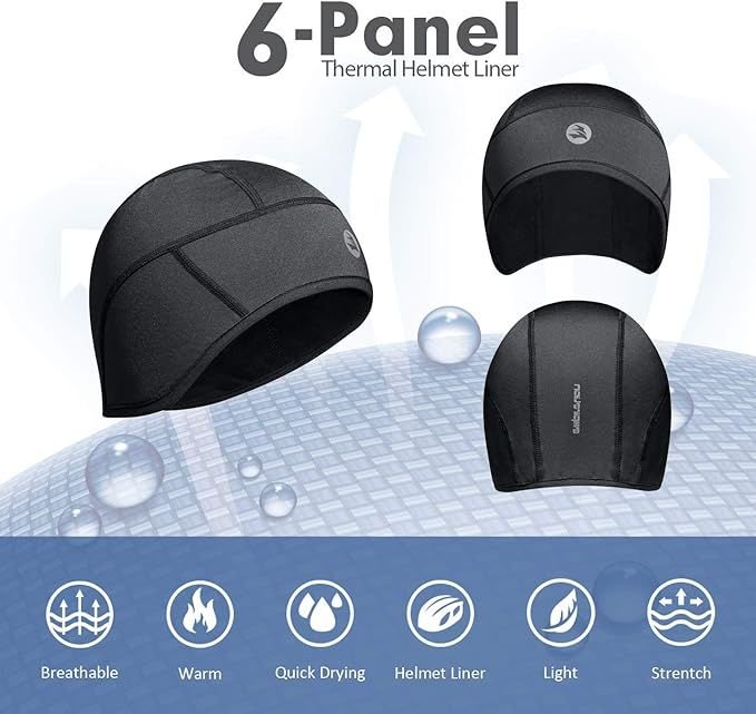 Mid-Weight Helmet Liner Skull Cap 6-Panel Beanie Thermal Running Hats Ears Warm Performance Moisture Wicking