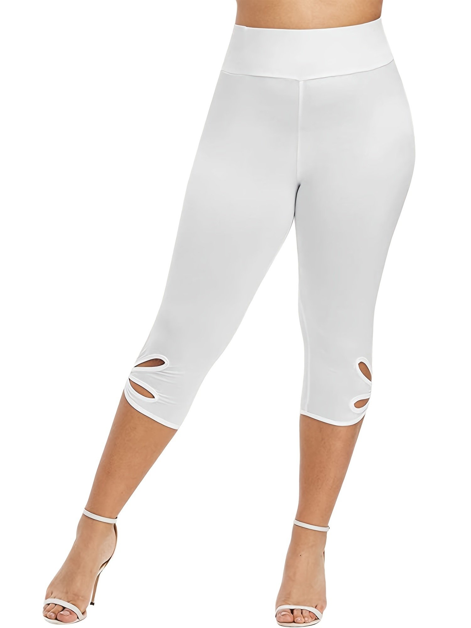Home > Plus Size High Rise Cut Out Capri Leggings; Women's Plus Medium Stretch Solid Casual Leggings
