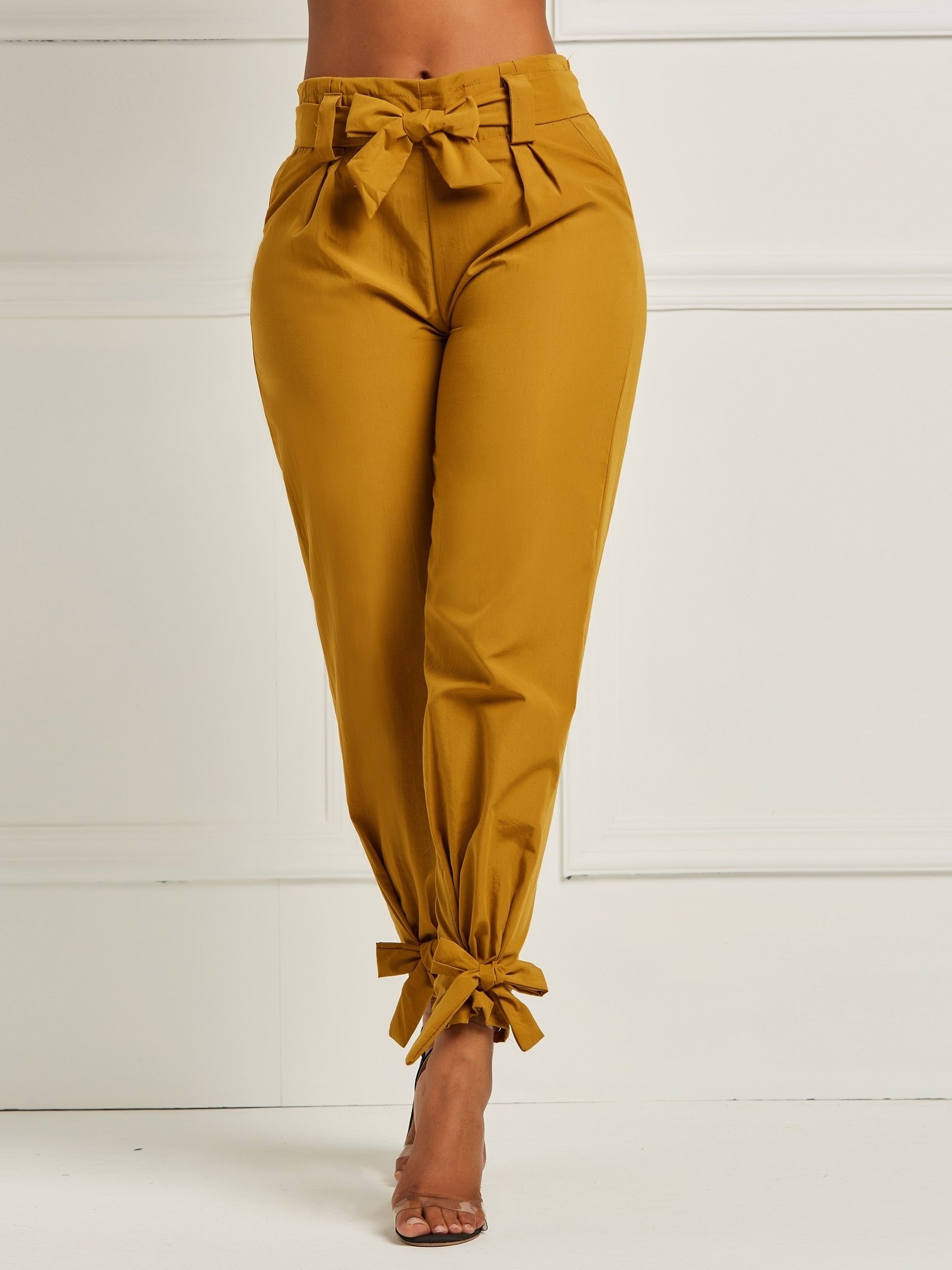 Home > Solid Bowknot Loose Pencil Pants; Mature High Stretch High Waist Pants For Spring & Fall